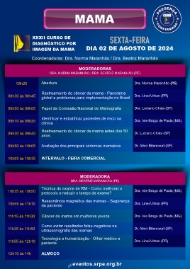 08h50 às 09h05 Papel da Comissão Nacional de Mamografia Dra. Luciano Chala (SP)